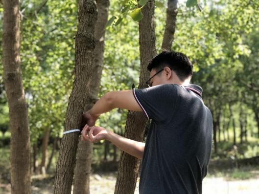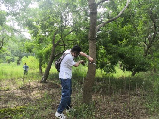 近期“秋老虎”發(fā)威,炎炎烈日、驕陽(yáng)似火,林中蚊蟲(chóng)叮咬,地面起伏、時(shí)有溝壑。但沒(méi)有一個(gè)人叫苦喊累,認(rèn)真的用樹(shù)尺測(cè)量每一棵苗木,并詳細(xì)記錄。至太陽(yáng)西下,大家用腳丈量了500多畝田地,測(cè)量了10000余株苗木?!巴陜善诘拿缒颈P(pán)點(diǎn),我要盤(pán)四五天才能盤(pán)點(diǎn)完,現(xiàn)在有大家的幫忙,不到一天就完成了,工作效率大大提高了?!泵缙载?fù)責(zé)人高興地說(shuō)。