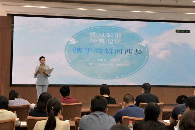 為響應(yīng)集團黨委號召,進一步貫徹落實集團半年總結(jié)大會精神,展現(xiàn)職工昂揚向上的精神風(fēng)貌,激發(fā)職工干事創(chuàng)業(yè)的豪邁熱情,7月27日,河西集團總部舉辦了“踔厲奮發(fā)向未來 我與河西共成長”主題演講選拔賽。本次選拔賽由機關(guān)黨總支和機關(guān)工會共同舉辦,共有來自各部室的8組選手參加。各部室主要負責人出席了本次比賽并擔任評委,機關(guān)工會主席、辦公室副主任王俊,集團工會副主席、機關(guān)黨總支書記、黨群工作部部長蘇小剛發(fā)表講話。