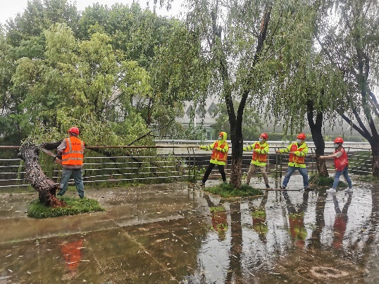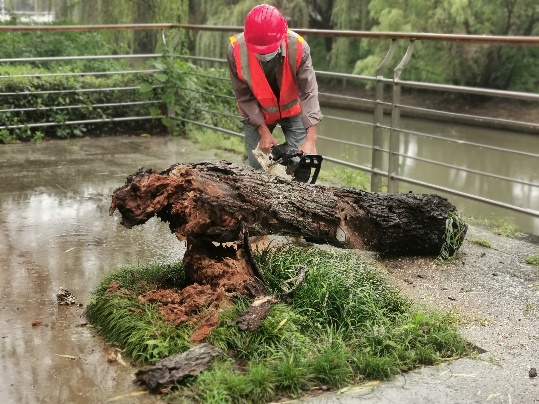 陣風10級以上、平均風力8級,接連數天雨水不斷,7月27日,“煙花”中心過境我市,為進一步將“我為群眾辦實事”實踐活動落到實處,進一步體現黨員的先鋒帶頭作用,公司迅速組建黨員先鋒隊,協(xié)助綠化養(yǎng)護人員巡查檢查、清理斷枝、搶險倒伏樹木。