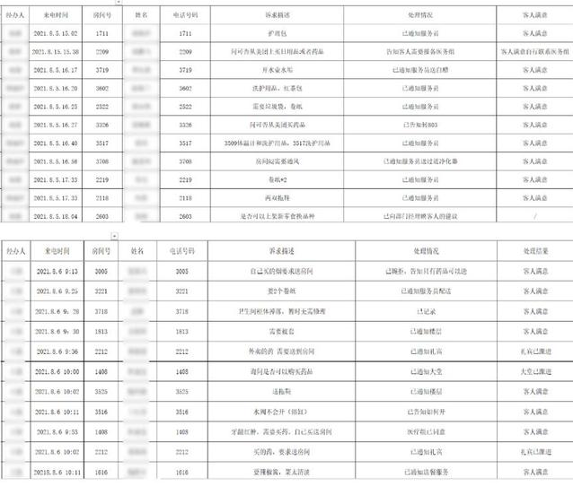 “3323房間需要辣椒醬或老干媽”、“2420房間需要免洗洗手液”、“3903房間住客喉嚨不舒服需要藥”……客服中心每天都會接到各種特殊的需求并一一做好記錄,及時(shí)聯(lián)系相關(guān)同事協(xié)助采買、送達(dá)。