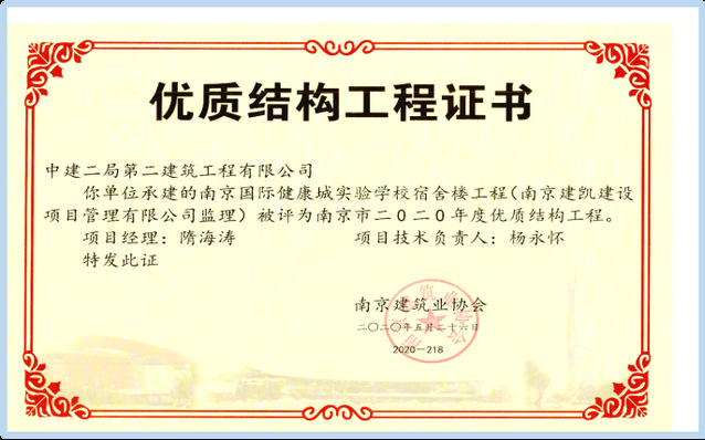 2021年12月6日,中國(guó)施工企業(yè)管理協(xié)會(huì)公布2020-2021國(guó)家優(yōu)質(zhì)工程獎(jiǎng)獲獎(jiǎng)名單,河西集團(tuán)新城公司所屬南京河西工程項(xiàng)目管理有限公司代建的南京國(guó)際健康城實(shí)驗(yàn)學(xué)校項(xiàng)目喜獲該獎(jiǎng)項(xiàng)。國(guó)家優(yōu)質(zhì)工程獎(jiǎng)設(shè)立于1981年,是經(jīng)國(guó)務(wù)院確認(rèn)的我國(guó)工程建設(shè)領(lǐng)域設(shè)立最早,規(guī)格最高,跨行業(yè)、跨專(zhuān)業(yè)的國(guó)家級(jí)質(zhì)量獎(jiǎng)。