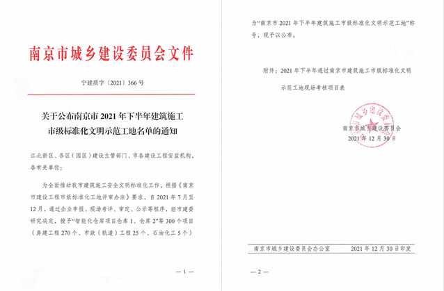 近日,河西集團新城公司河西金融中心項目喜獲市建委工程質量安全監(jiān)管處發(fā)布的2021年下半年“市標準化文明示范工地”稱號。