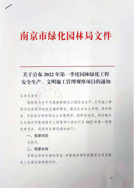近期,河西集團園林公司承建的仙鶴片區(qū)北部中學景觀綠化工程榮獲2022年第一季度南京市園林綠化工程安全生產(chǎn)、文明施工管理示范觀摩項目。
