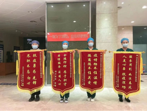 近日,河西集團(tuán)南京國(guó)際博覽中心酒店“愛(ài)心賓館”再次收到了解除隔離人員贈(zèng)送的4面錦旗,面面錦旗表心聲,聲聲感謝,深深信任。每一次肯定,都賦予我們更大的力量!