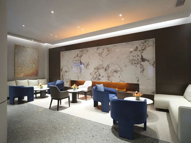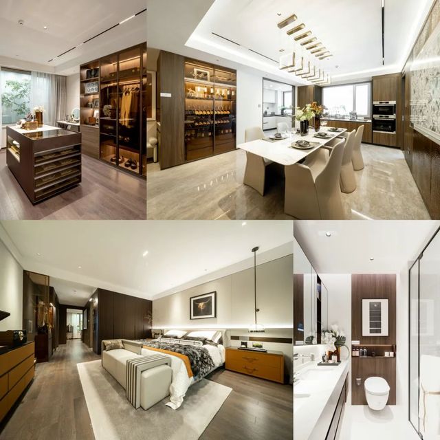 此次公開的樣板間為265㎡奢華四房兩廳三衛(wèi)雙陽臺戶型,在戶型研發(fā)和飾面材料使用上,設(shè)計團隊都針對主要客戶人群的需求,經(jīng)過反復(fù)斟酌,對細(xì)節(jié)處理更是精益求精,成為奧體公司迭新之作。硬朗的石材紋理與沉穩(wěn)的木飾面碰撞出豐富的層次變化,加上墻面局部銅制捶打紋飾面和內(nèi)嵌式金屬開關(guān)面板,營造低調(diào)奢華的現(xiàn)代風(fēng)格。