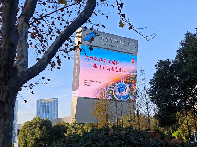 憲法是國家的根本大法,是治國安邦的總章程。今年12月4日是第十個(gè)國家憲法日,12月4日所在的周是第六個(gè)“憲法宣傳周”。為深入學(xué)習(xí)宣傳貫徹習(xí)近平法治思想,著力營造學(xué)習(xí)宣傳憲法的濃厚氛圍,弘揚(yáng)憲法精神,維護(hù)憲法權(quán)威,集團(tuán)充分借力戶外大屏媒介載體進(jìn)行普法宣傳,會展、公園、酒店等板塊根據(jù)集團(tuán)部署聯(lián)運(yùn)同步點(diǎn)亮“大力弘揚(yáng)憲法精神、推進(jìn)法治南京建設(shè)”宣傳標(biāo)語,利用各類公共場所電子顯示屏滾動播放,使憲法宣傳走進(jìn)千家萬戶。